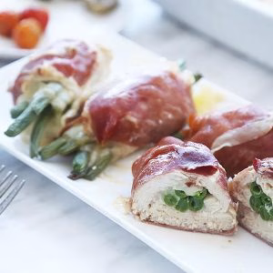 Yields 4 servings of Prosciutto Wrapped Chicken with Green Beans